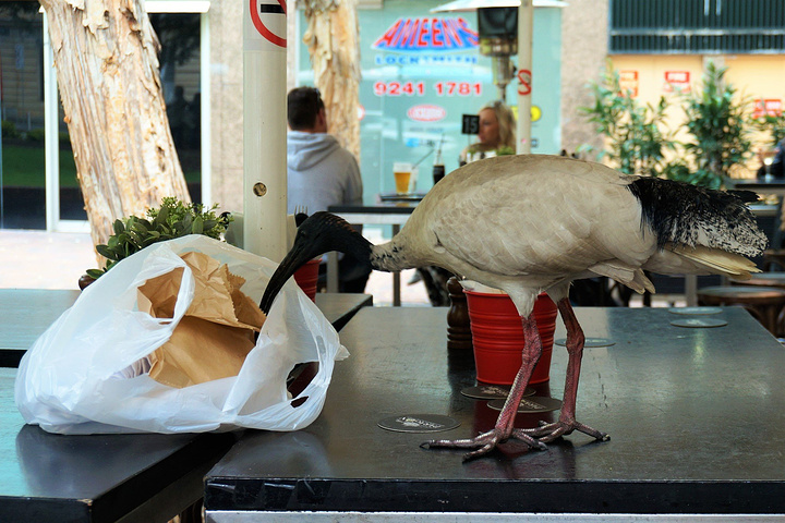事实上,悉尼这个所谓的大城市,从中心CBD向外走两条街就冷清得很。到处都是空无一人的大楼,有些还写着For Sale。好不容易找到一家评价很好的餐厅,结果人家很傲娇地说:“没有预定,恕不接待哦。”最后只能找家路边的小酒吧吃点如今已毫无印象的食物,唯一记得的是邻桌喝醉酒趴着睡的壮汉和贼头贼脑偷吃面包的鹭鸟。