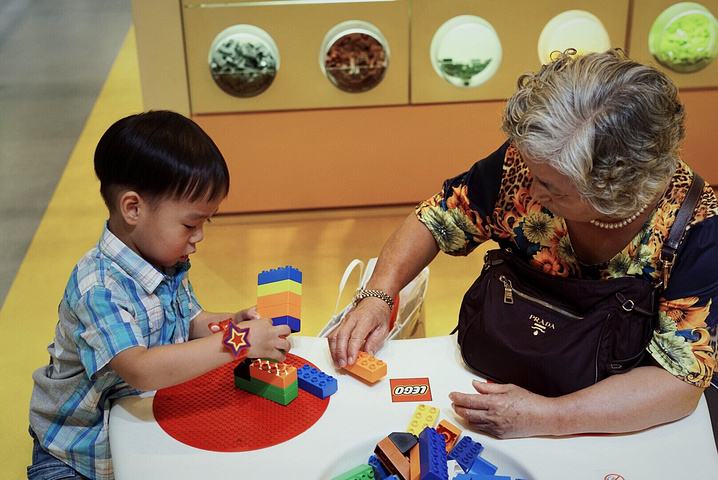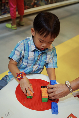 哥哥和弟弟手上带的也就是酒店送的小礼品之一,会发光的,哥俩都臭美得带着 这是在酒店大堂的乐高商店玩乐高