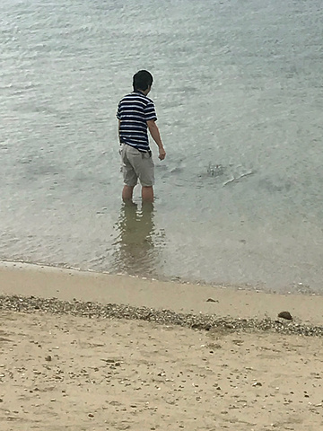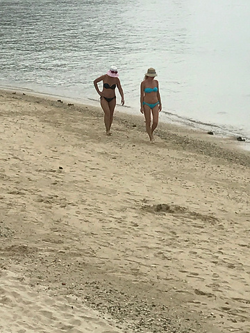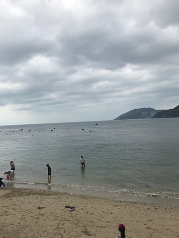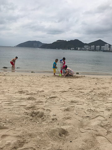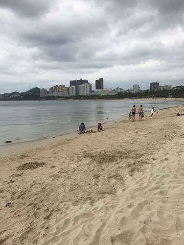 昨天晚上回来时,桐桐看到了宋城巨大的广告牌,心心念念的想去了,因为早上起来天气有点阴,开车去的时候在大东海沙滩上边停了下来,桐桐在这里垒了一个大城堡,吸引到两个小孩子一起过来玩了,沙滩上有不怕冷的老外穿着比基尼在散步,我坐在岸边看到她们一直走到那片人很多的沙滩了,旁边两个老外还在拥抱,也不觉得羞羞羞