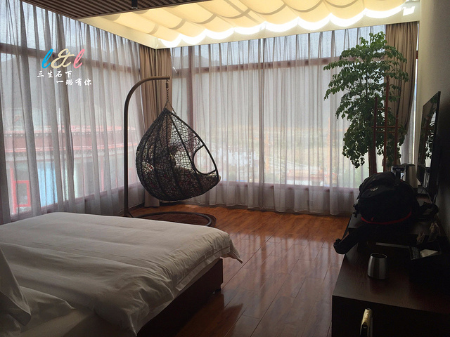 不出所料,酒店美美哒,第一天是我们的休息日,充分地适应缺氧、补觉,因此定了这个刚开不久,环境超棒的酒店,房间叫星空大床房,因为房间有大大的环形落地窗和一条玻璃房顶,夜晚躺在床上或者秋千上就能看星星。