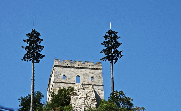 这是敌楼的近景。令人吃惊的是左右两边两棵树居然是防雷用的避雷针!