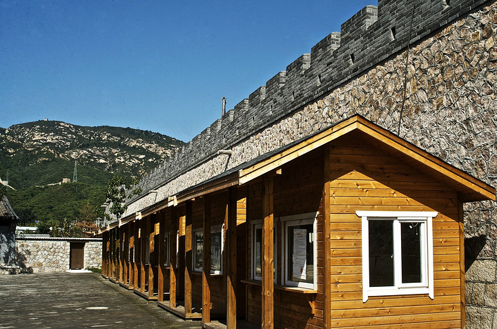 沿墙边一排小木屋,很有特点和味道。