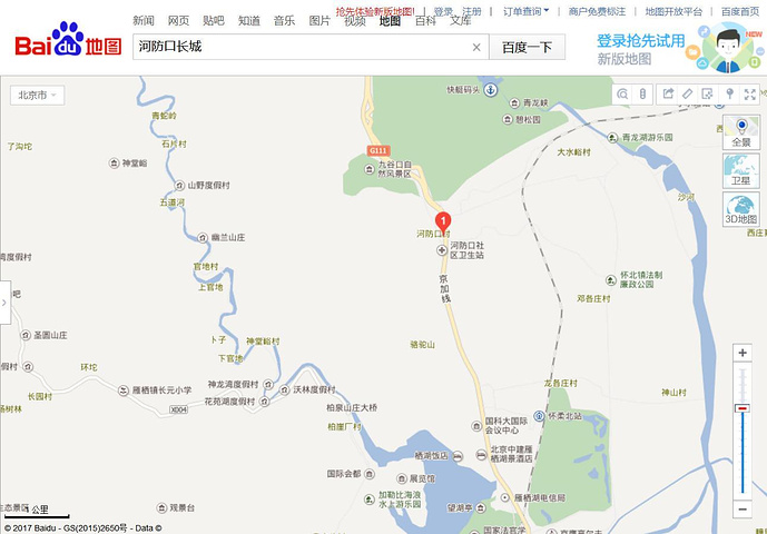 穿村而过,通过长城关口直通塞外。河防口即是怀柔区怀北