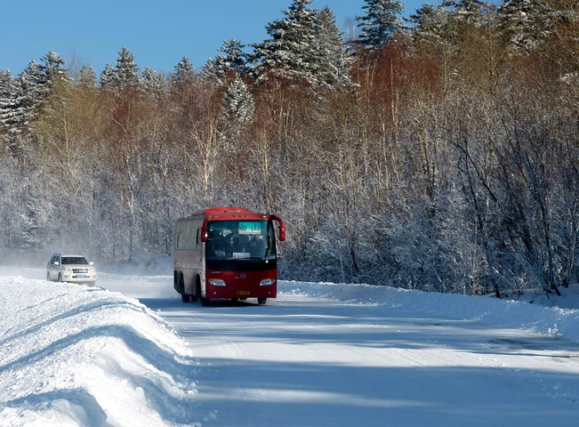 12月23日,在奶头河山庄吃过早餐之后,我们出发去长白山雪岭。