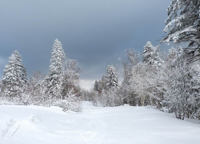 雪岭的雾凇景观具有形成时间早、面积大、次数多、时间长(每年的9月末至次年4月末)等特点。