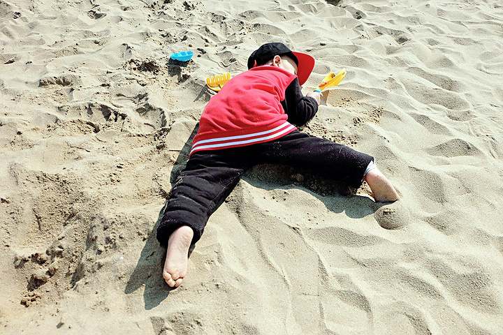 这次玩到了真正的沙子,不是那种假的大颗粒的沙子,感觉怎么样,浩哥?