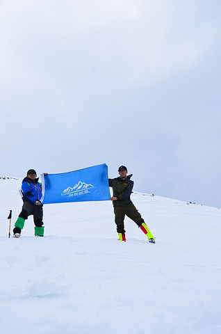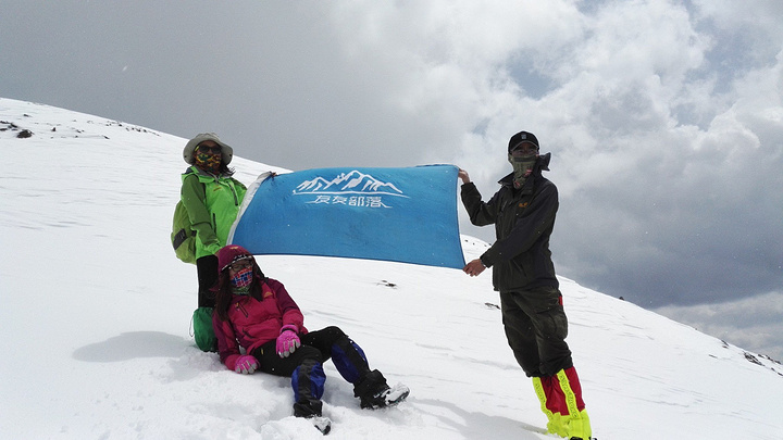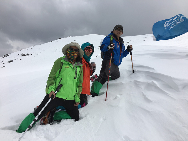 此地不宜久留 , 好不容易爬上松软滑溜的雪坡拍个合照后闪人了。