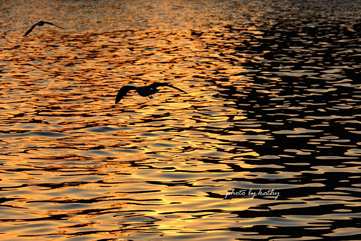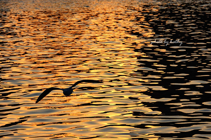PART 3:夕阳下的精灵【原本站的位置没什么光线了,于是换了个位置,正好暖暖的余辉洒在了水面上,然后就采取了守株待鸟法——确定了取景范围等着鸟儿飞过】【这张用了暖色滤镜】来自游记【我爱你,天津!】随拍之海河 冬.鸥