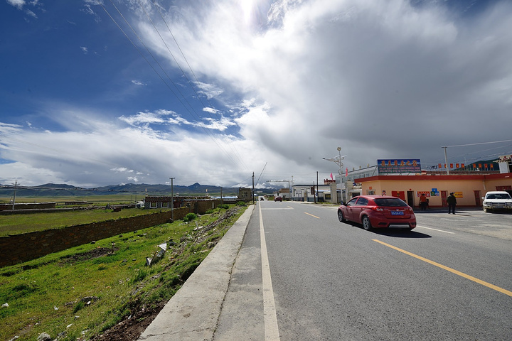 不久就到达了禾尼乡,就在G318公路边,不多的一些房屋帐篷,安顿下来,准备找地方吃午餐。站在公路边遥望美丽的草原。而天空也渐渐显出些蓝色。