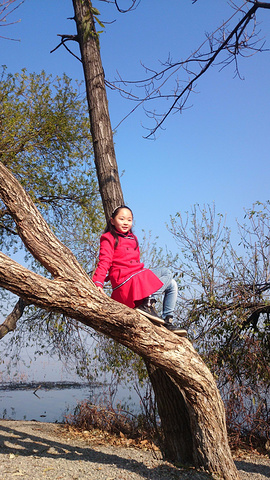 “金鳞沙滩”被围起来了,禁止进入。有点遗憾不能近距离的感受脚踩在沙滩上的那种软软的细腻感觉。不过转念一想,也挺好的,没人进去,才能拍到这么美的照片。在沙滩旁的高亭上休息,感受着凉风轻轻吹拂,这一瞬间,世间所有的烦恼都烟消云散了。 孩子们在水边嬉戏,在沙滩边玩沙子。大概玩了一个小时,我们准备回去了。睿睿要带一袋沙子回去,说是给她的小乌龟堆个小岛。姚姚也跟着要带,好吧,趁着孩子们都还有颗童心,以后再大点,让她们带沙子估计也不会带了。