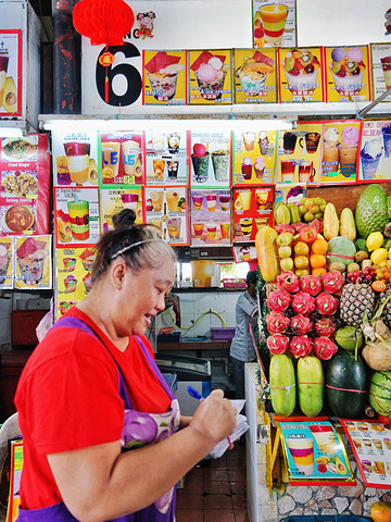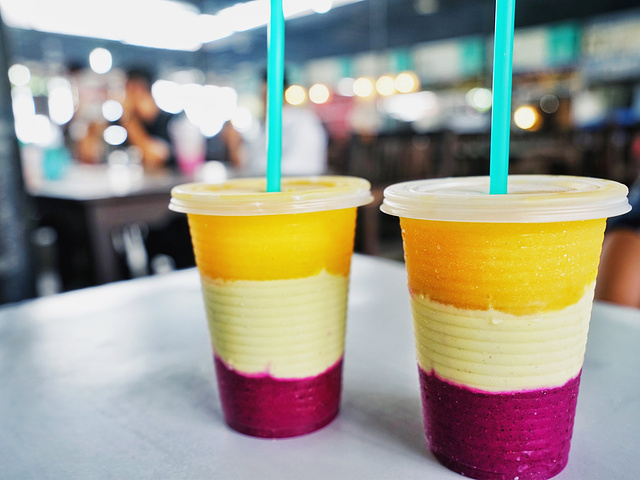 火龙果、牛油果、芒果。具体地方叫什么我忘记了,不过在丹绒亚路大酒店旁边哦,也是当地人爱喝的,果汁超正。一定要认准这家哟,她家是第一个发明这个的哦,也是人最多的。
