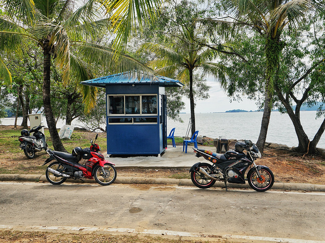 离市区很远,有巴士去,就是没有巴士回,都说建议坐计程车去。我们往返是60RM,路上会路过水上清真寺,因为司机和我们英语都不太好,所以停留不是很多,光开车转了。如果你时间充足,还是骑着小摩托去吧。Ps:进学校需要出示你的护照哦。