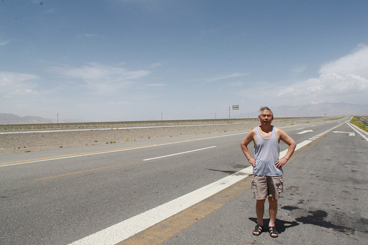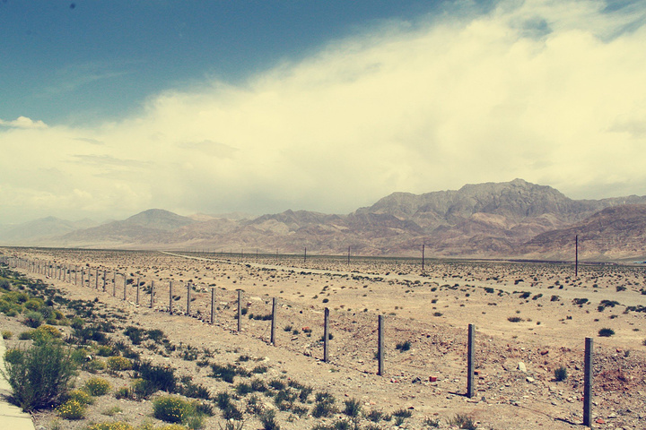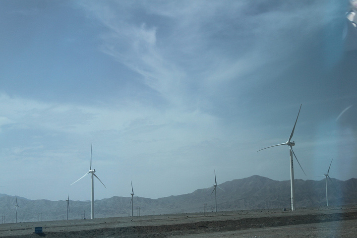 去敦煌的路上都是一望无际的戈壁,公路和寂寞的风力电机