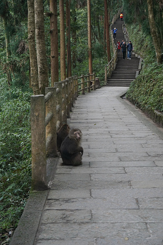 到达万年寺后直接走向清音阁,这里的途中会有野猴,所以要时刻注意自己的物品,带好棍棒,还是有一定的威慑作用的。但是,猴子还是胖嘟嘟的蛮萌哒~~而且,我想说路上遇到的两只猴子是我们看到的最近距离的猴子了TAT为什么不给我吃的撒>o<来自游记四川=美食?不,小生更喜欢的是风景
