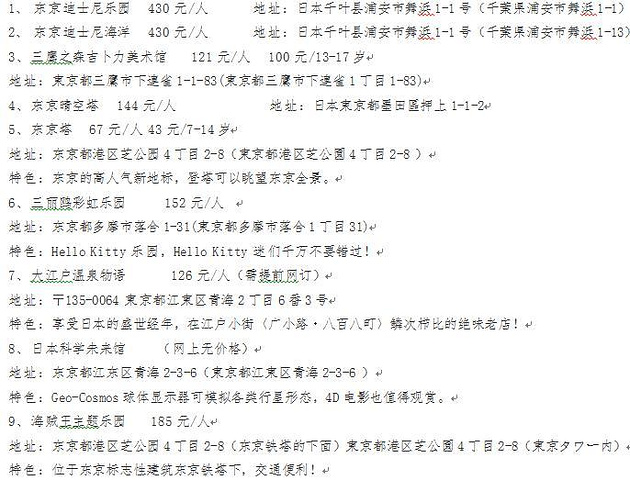 东京景点、门票、地址、特色提前知晓(只是部份景点)