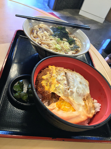 炸猪排包蛋套餐里还有一碗面,真是美味而且吃到肚子撑!
