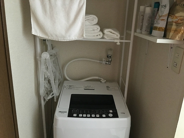 洗衣服、晒衣架,室外还有阳台,非常方便晾晒,房东还准备了日用品和基本护肤品