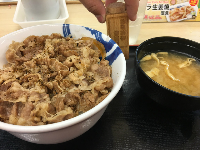 晚上回东新宿吃饭:松屋,经济实惠+好吃,牛肉饭、铁板牛肉,还可以加一个生蛋,或半熟的鸡蛋。