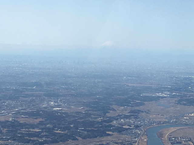 飞机上看到了远处富士山顶
