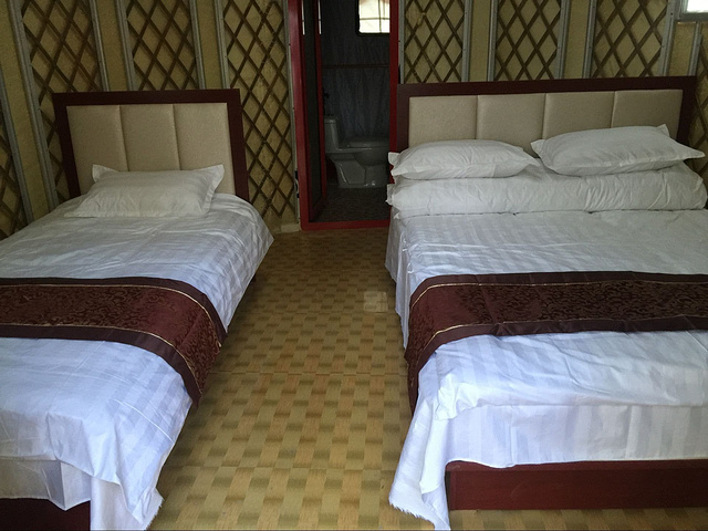 8月的周六去得,提前和老板电话了解一下,让打定金,由于各种顾虑没有打,也没有从网上预定当天去了因为堵车一直到下午3点多才下了高速,给老板打电话留房,老板告知房已经很紧张,让到了再说,半个小时进了中都生态林园见到了小赵老板,当时院里车人都人多,包括他们村里的所有农家院都人满为患,真是旺季的原因!因为没有预定就是打了电话,老板并没有给留房,而且村里也不定会有,我们一行16人当时有点蒙圈了,有老人有孩子这可怎么是好?赵老板大概也看到了我们的着急与焦虑,安抚我们先别着急,接着打电话给他的同行咨询房态,几个电话过后,不是没房就是房间不够住不下,最后骑着摩托老板出去给找,半个小时回来后也是没有找到,一早从天津出发老人孩子已是非常疲惫饥饿,我好后悔我没有提前确定下来房间,害得一行人没有安身之处,老板告知赶快回县城找房,万一有最好,商量后俩男人开车去了20公里外的张北县城,我们一行在赵老板的雅间歇脚,点了只烤全羊打算晚上吃!天渐渐快黑了,他们在县城找了快俩个小时,但还是找不到房间,而且告知县城找房的游客也有好多,最后只能无功而返了!无助的我们再也没有了其他办法了,吃过饭返回到张家口市住吧,真是后悔的肠子也青了,正在一伙人正不知所措的时候,小赵老板过来了,问问了结过,他说每年的8月份第一个周末都是人最多的一天,晚上他这有篝火晚会,吃了饭让我们玩会再走,可当时的我们又怎么有心情玩呢?这老的小的该怎么是好?客人多的老板被叫走了,我们继续郁闷,大概过了10分钟吧赵老板又来雅间找到了我,他说:我在县城有3室一庭的房子,夏天我们都在这没人住,今晚带上老人孩子去我家住吧!听到这话我都快哭了以为我听错了,朋友们这是真的,老板把自己住的房子让我们住,我太感激了,真的,我该怎么答谢他呢?老板说我如果为了要钱的话肯定不会让你们住的,为了老人和孩子,他说的一句话很是让我记忆犹新:出来玩一次不容易,带着老人孩子你们玩好就是我最高兴得!就这样一下午的难过,一下子全没有了,对他的感激,对3家人的愧疚让我的眼泪掉了下来!吃过晚饭篝火晚会开始了,烟火乐队、太好了太美了,赵老板还给大家唱了歌(唱得很棒,真的)走的时候我给老板结饭钱顺便给了他2000的房费,(当时的房费一间标间就已经380了)人家把自己住的楼房都让我们住了,但重要的是老板死活不要,还说这样就不让我们住了,可是如果您不要,我们更没法住了,好说歹说他只收了600!就这样我们住了一晚,第二天早早收拾完为了感谢赵老板我们特意在他蒙古包又住了一晚,白天老板还安排我们去天鹅湖骑马玩车,第三天走了草原天路返回了天津!这就是我们的这趟旅行!希望看到的朋友如果有想要去张北坝上草原玩的一定要找我们赵老板,我用人格担保老板人真心不错!