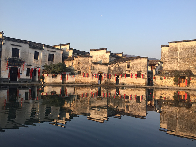 最后是有代表性的棠樾牌坊,据说是为了纪念鲍家有功绩的人,还蹭了回导游讲解,两位福建大哥还主动要求加微信分享旅途美景,到宏村已经是傍晚了,遇到的客栈老板接了我们送到客栈,简单整理后就出去溜达了,人真的不多,在添灯食堂吃了饭想简单溜达一下,就找不到回去的路了,还比较黑两个女的真的挺吓人的,很矛盾这个时候就希望能看到人啊。