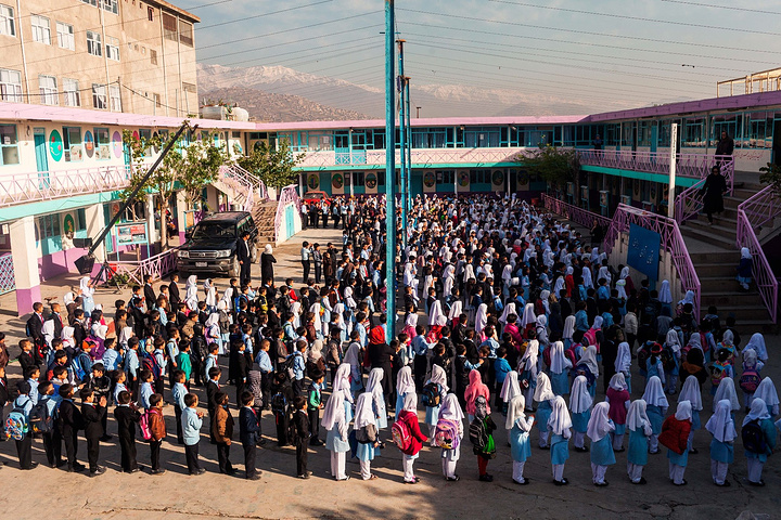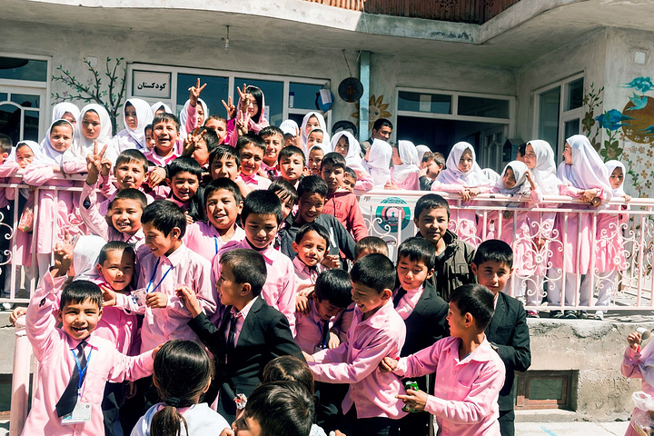 正好等到了下课时间,我们走到院子想看看大家的课外活动,结果学校里全部班级的孩子们都出来了,把我围的水泄不通,看见镜头,热情淳朴的阿富汗小孩天生就有很强烈的镜头感,我们一起对着镜头大笑,拥抱,比yeah手势,互相追逐玩耍,孩子王当得妥妥的~在记录下素材后,不耽误孩子们上课,我们也要拜别了,每一位孩子守在大门口直到我走出外面看不见他们,这样的阿富汗怎能让我不为之怀念?