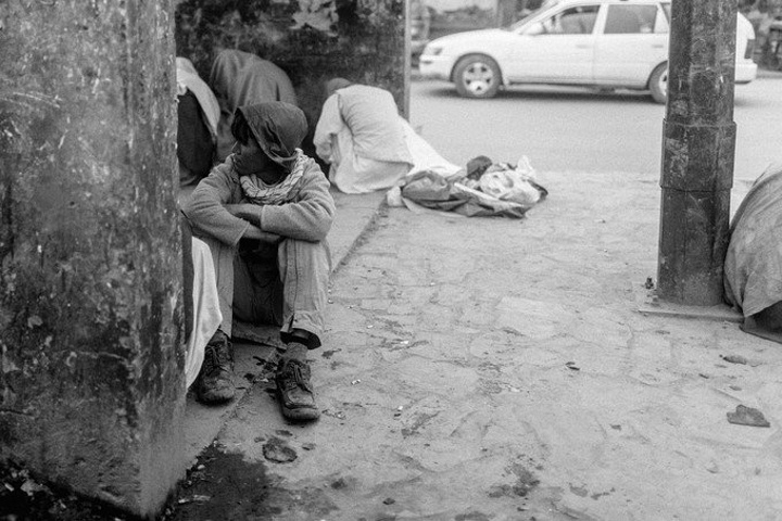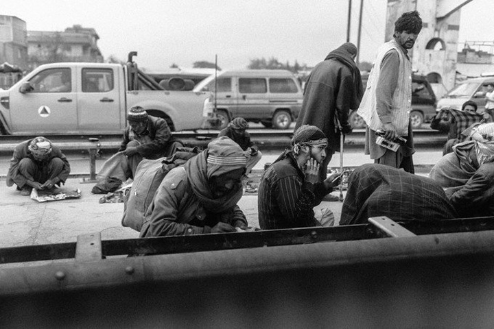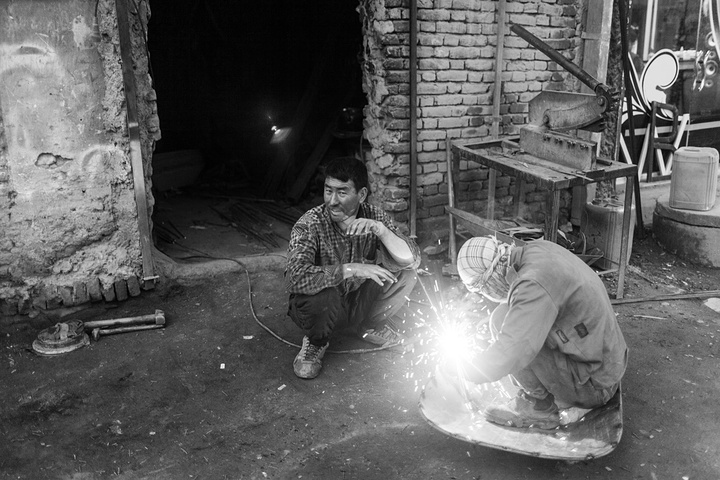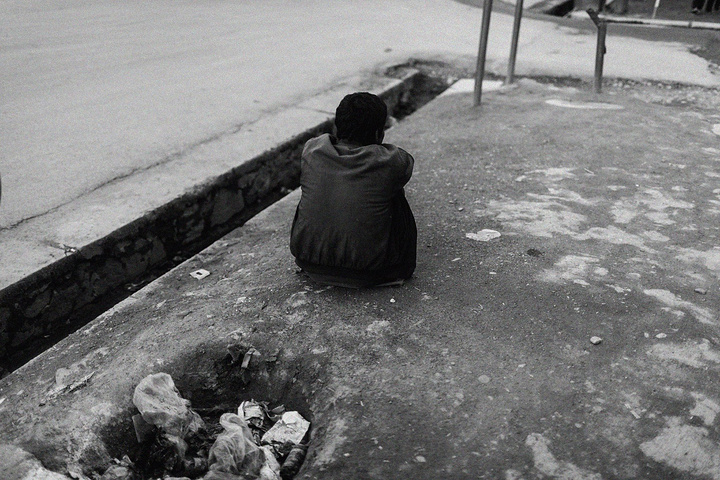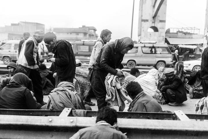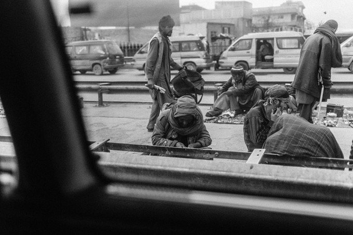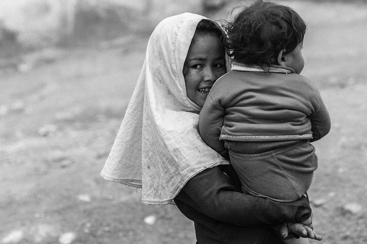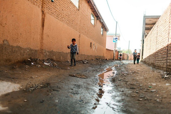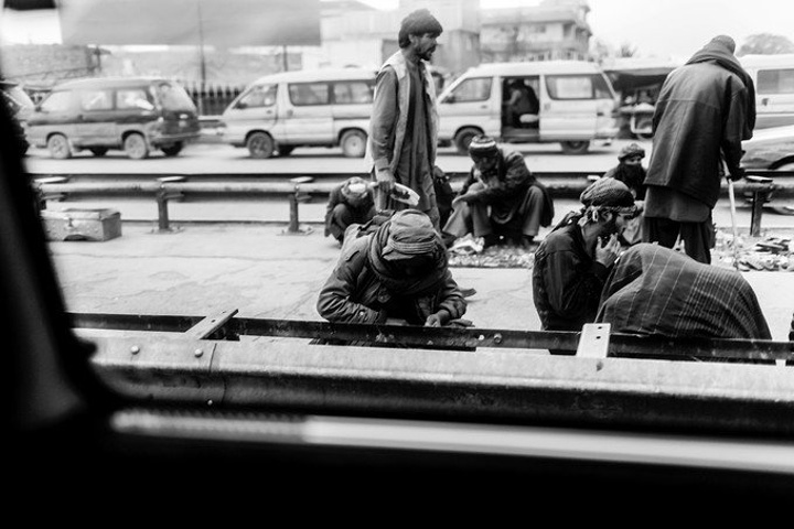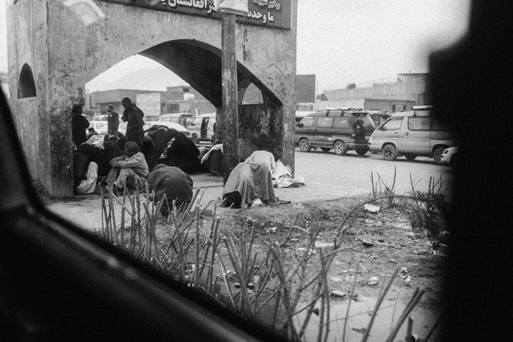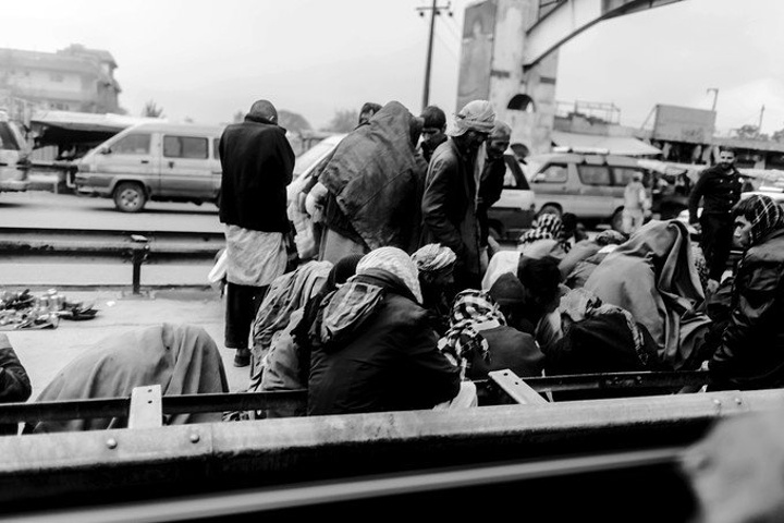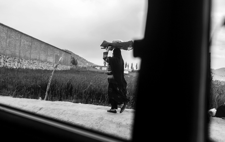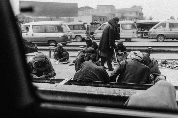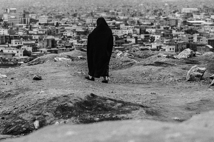 我拿着相机记录周围的环境,胆儿大的男孩子都朝着我认真的望着,但我却注意到一个躲在电线杆旁抱着弟弟的小女孩儿,她张望着脑袋看着我,也许是好奇我在做什么,但又不敢凑近看。我走到她的身边,我问她几岁了,家是不是就住在附近,现在有在读书吗,让海哥帮我翻译,她说:“我七岁了,这是我的弟弟,家住在附近,还没有读过书,早晨带弟弟出来走走。”她说完这些,我很能够理解她,因为在这样的贫民窟里,有太多太多这样的孩子了,因为家里穷,自己很小的时候肩上就必须挑起家庭的责任,他们没有童年,似乎有的只是和同龄人一起在家门口走一走。从Fedaee那了解到,有的人甚至一辈子都没有离开过这座山包,没有去过喀布尔城中心,不知道外面的世界有多大。