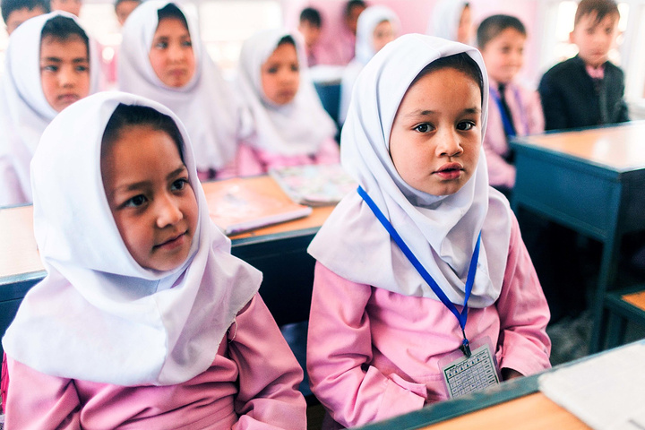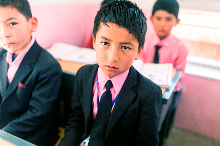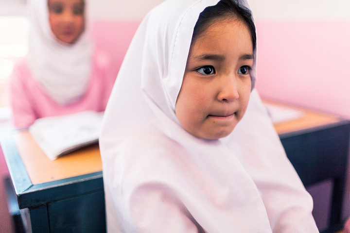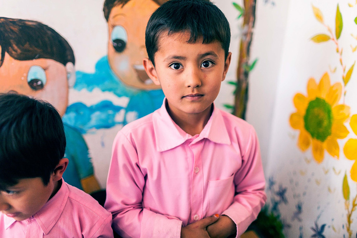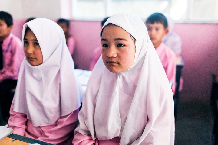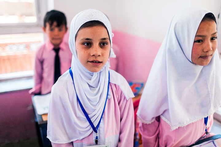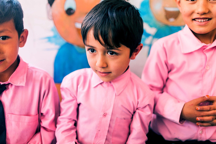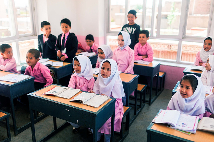 在校长的带领下,去班级里面拜访小朋友们。在阿富汗,我想学校很注重服装礼仪,Marefa学校的校服以蓝色调为主,这所学校以粉色调为主,小姑娘们穿着粉红裙子白色头巾可爱极了,男生们穿着西装配搭粉色衬衫打着领带,我敢说比我当年小学的校服好看太多了,我们基本都是清一色运动款校服,在这边大家一定能有很多共鸣对吧~