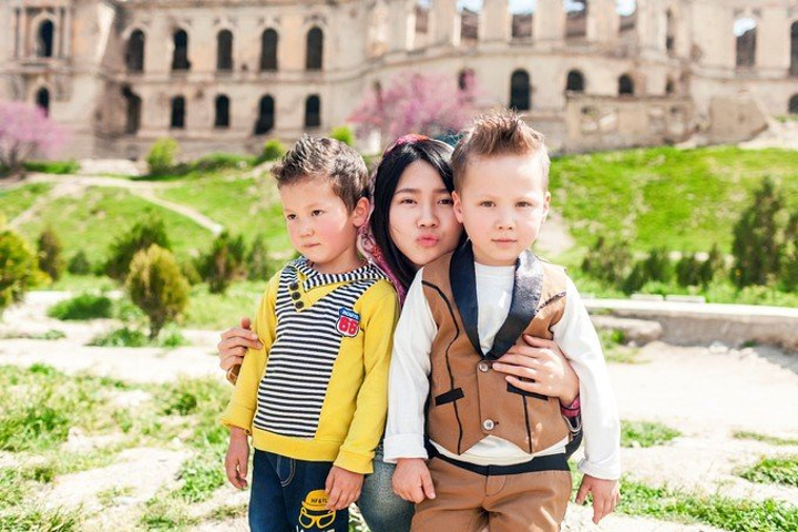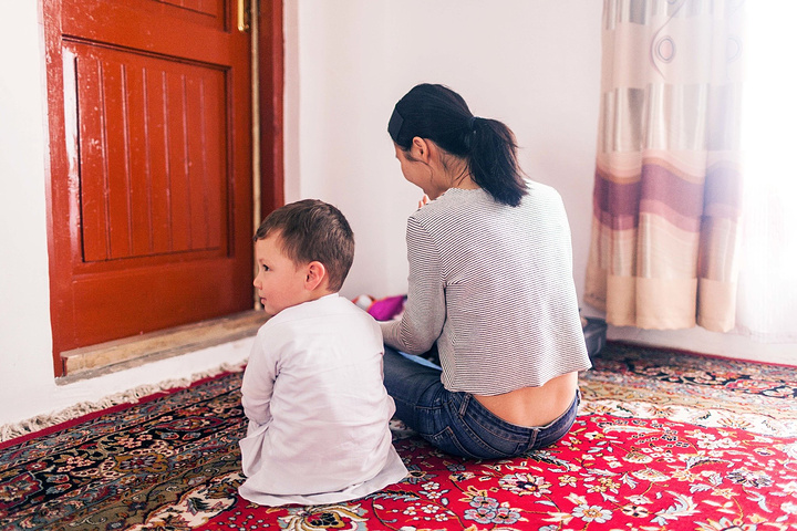 嫂嫂们搀着奶奶站了起来,我赶忙过去搭把手,侄女们乖巧的倚着墙壁认真地排排站,大家都让我和奶奶站在中间,我们又端端正正拍了一些纪念照,由于阿富汗女人的面孔是不允许出现在公众平台画面上,为了尊重她们,在这里就打马赛克了。