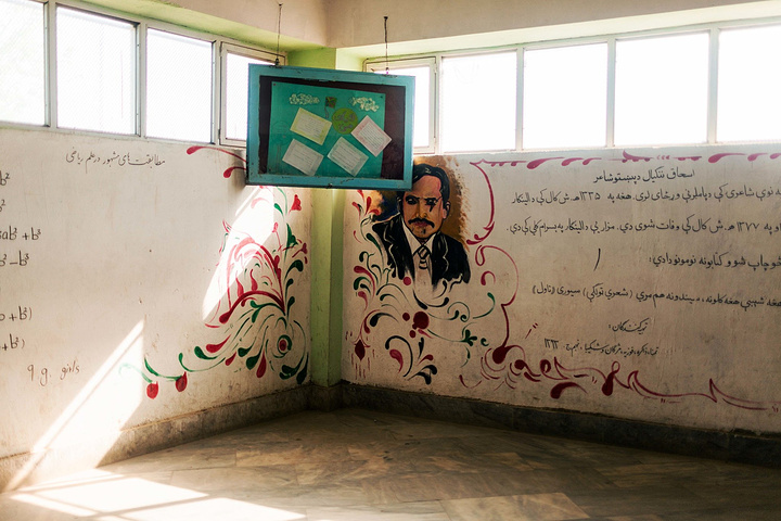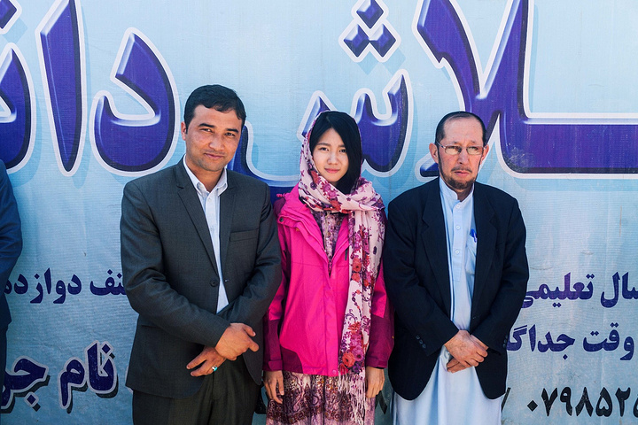 后来高中部教导主任来接待,领着我们去了一个班级做采访,高中部的楼梯是旋转式楼梯,看过去很有年代感,还没走到楼上,阵阵读书声此起彼伏,在教导主任安排下进入了一间教室,海哥翻译对我说,教导主任希望我在讲台上用普什图语与同学们问声好,于是我和教导主任在讲台上进行了现教现学,很认真地和大家问好。在课堂上,教导主任向我们介绍了一名女学生,他们今年高三正在面临着高考,这名女生因为在学校成绩非常优秀,去年代表阿富汗去了日本做学术交换,我想这就是她的命运转折,她通过自身的努力走出去,我也了解到了每一个同学的愿望就是顺利通过高考,考上喀布尔大学,将来能有一份工作亦或是完成自己想要的梦想。所经历的这些课堂时光,越来越感受到阿富汗正在积极面对着国家教育事业,每一个学生都有着自己的梦想,当我听到有位女生将来想当医生,是因为小时候家人因为爆炸而去世,我很心疼她,她肩负着她的梦想,阿富汗每一个青少年都怀揣着梦想。你看,这就是一个国家在慢慢进步,战争不可怕,只要人心能乐观向上,阿富汗有这些满怀梦想的青少年,这就是最大的进步。