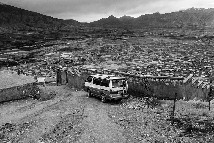 哈扎拉贫民窟聚集在一个山头上,坡度很陡路也很窄,身体跟着车在碎石路上摇摇晃晃的走着,两边就是一户户矮平房,几个小伙推着手推车下山搬货,有位大爷点根烟坐在家门口,似乎看上去他的一天、一年、一辈子的生活都乏然无味