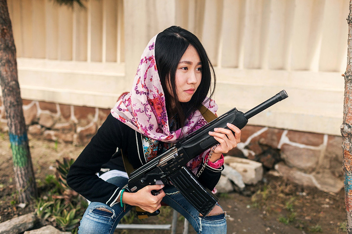 越往上开几乎看不见什么人,每家每户都紧闭着门,可能都外出做事了,阴云笼罩着整座山头。在上坡的路 边经过了一个战争遗留下来的大炮,我下车打算去看一看,一出车外,呼啸的寒风盖过,头巾一把就蒙上了我的脸,我一脸懵逼状态把头巾裹好,任由寒风刺骨的吹,我缩紧衣服往前走。这个大炮的底部已经被炸毁了,剩下上半身的入口和炮筒,我和小D姑娘搀扶着往炮口里钻,想一起拍张自认为可以炫酷的照片,但出来的照片,你能想象就是在风中各种凌乱哈哈哈。。