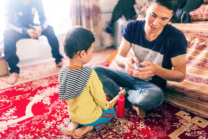 刚吃完饭,俩小侄子呲溜地跑进屋里,调皮的yahya直接往柯南身上跳去,另一个小朋友比较内敛也跟着调皮鬼yahya往柯南身上蹦,这俩小家伙知道今天要跟我们出去溜街,高兴坏了。
