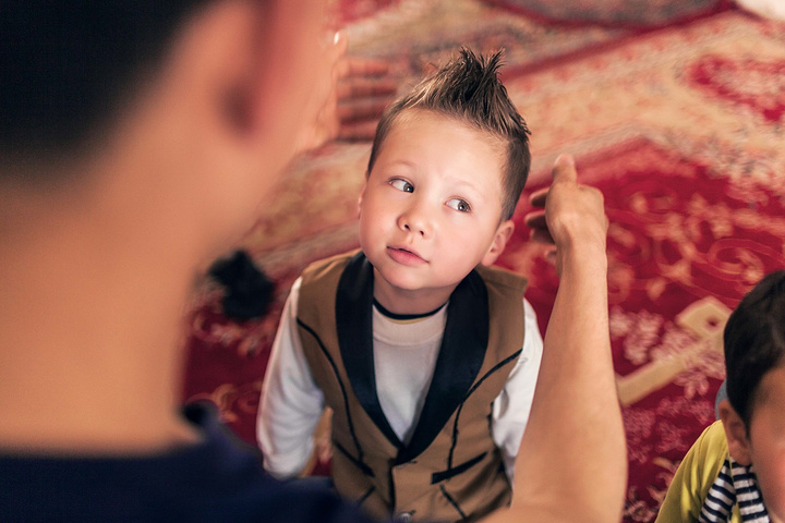 还有这个戴黑色头巾像洋娃娃一样的小姑娘,她是学前班里的一员,所有孩子和老师都坐在地毯上上课,我问她:“你对上学还适应吗~在学校过得开心吗~”她一副羞答答的样子点头,好乖巧的小姑娘~面对小男孩儿小女孩儿总是母性泛滥~