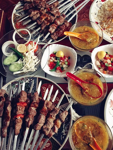 每一串烤肉滋溜溜的流油,让人看得就很有食欲,再次对阿富汗美食进行点评,和新疆无区别真的太太太好吃了。