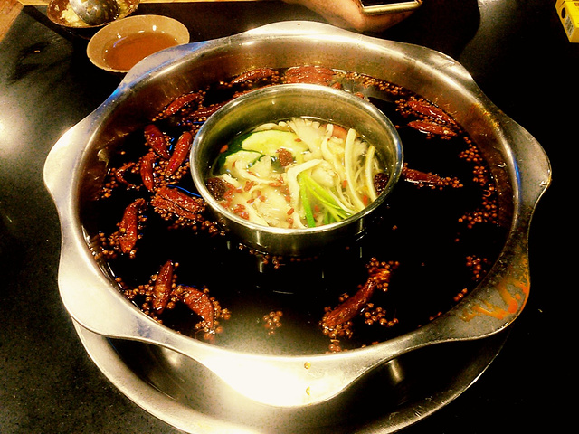 (关于为什么来重庆还要吃鸳鸯锅这个我必须解释一下,已经被好多人问过了!.....那是因为同行的朋友不能吃辣,我反正是奔着红油这一边来的!)