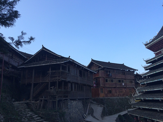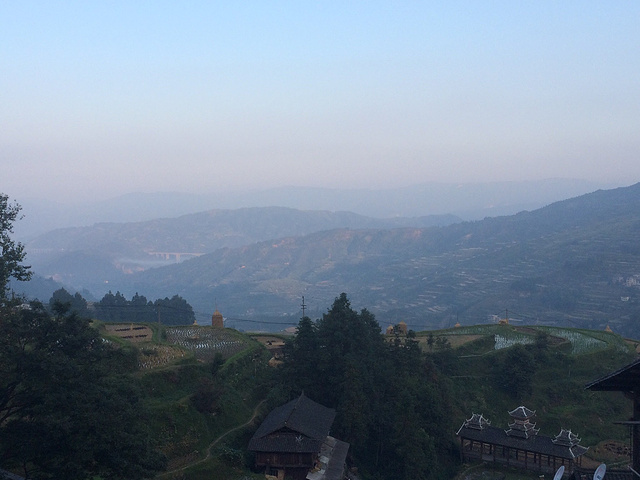 清晨的空气非常清新.虽然冷.进去堂安的山路很陡峭.高而险.风景一览无为.里面的建筑让人叹为观止.全是木制房屋.依山就势.悬空吊脚.看着危险却牢固无比.