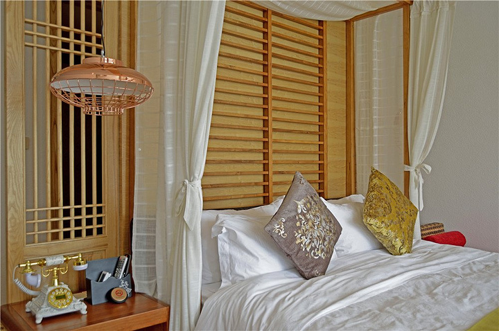 推开窗户就可以一览七星湖的美丽景色,这是涟岸最显著的特点,房间的所有布局和陈设都以木为主,每一处都体现出设计者的用心。