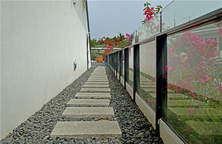 走出房间就来到了私密庭院,素雅的院墙上开满了显眼的花朵,在微风中飘扬着摇曳的身姿,空中露台和酒廊小屋仿佛又来到了另一个世界,这里的每一间房都有不同的设计主题,唯一不变的就是主人心中让“远方和家”统一的美好愿望。