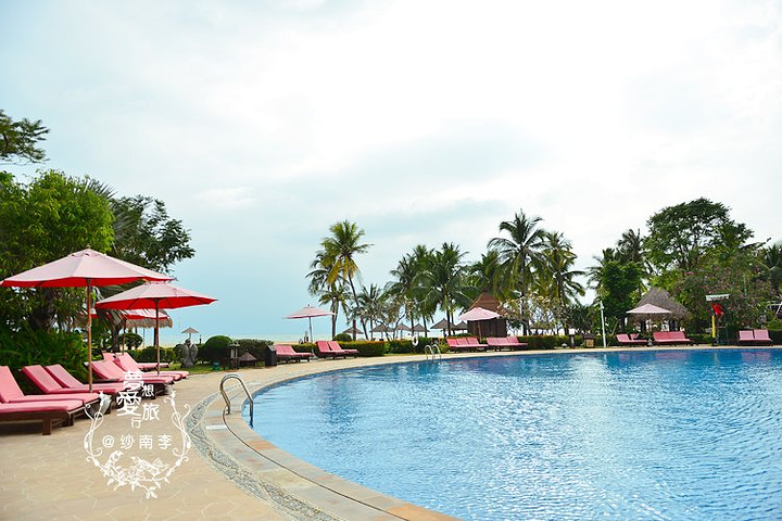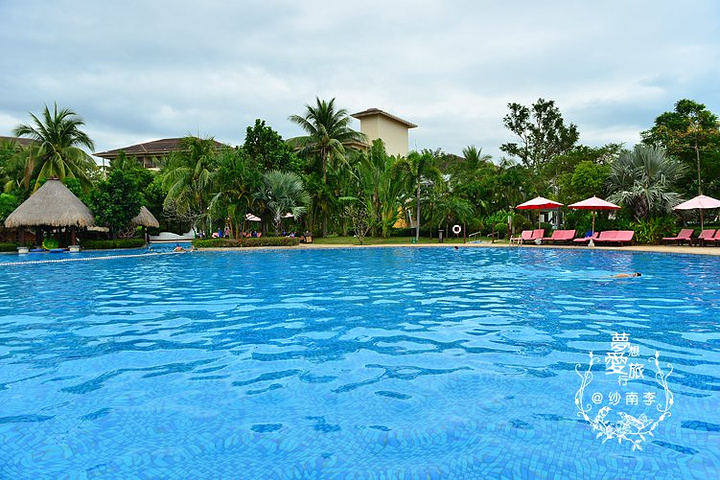沿着大堂吧下楼,就是泳池,泳池也是可以看到大海的,这个度假村有自己的私家海滩,不会拥挤,更不会邋遢,拥有私家沙滩是我每次选海边度假酒店的首要条件。泳池超!级!大!泳池的水质也是很好很干净的要拍全我要拍3次拼起来来自游记#三亚之旅#一月,二人,三亚,四晚,五天,流连忘返的clubmed之旅