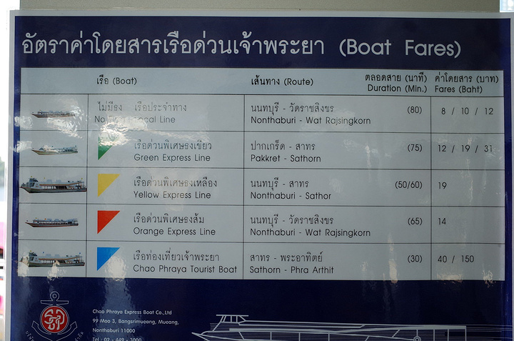 公交船按照路线和停靠方式以不同的颜色旗帜区分,一般去大皇宫沿线用的多的是橘色和没有旗帜的Loacl line。