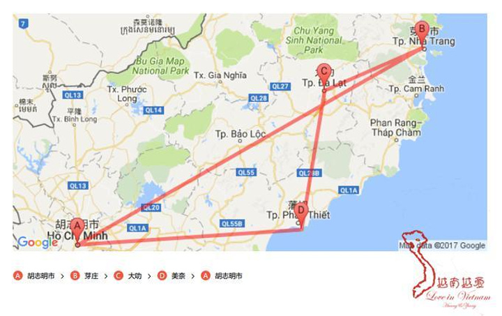 既然是越南越爱的主题,这次的行程主要就是以南越四城:胡志明---芽庄---大叻---美奈为主,