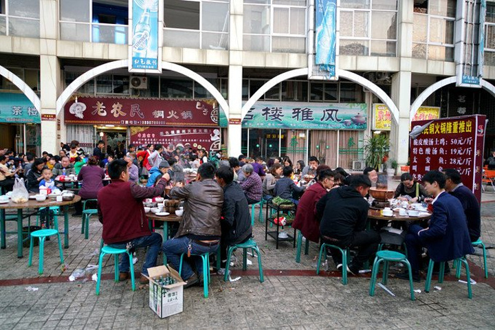 街上的铜火锅店很多,当然吃的人也很多
