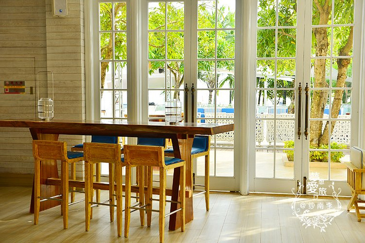 从私家沙滩往回走,可以去到鹿回头酒吧,这是除了大堂以外,另外一个让我们好好喝酒的地方。室外是充满地中海风情的度假桌椅。