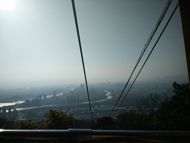 从涌泉寺出来爱人说不走下去了,于是走了几百米来到索道,坐了下去。索道还是比较简陋的,只能坐得下两人,不是封闭式的,就是两个矮门围起来,在索道上看看风景还是不错的,也要20分钟才能从顶上下来。