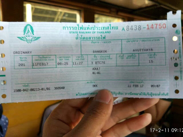 曼谷到大城 15泰铢 大城到华富里13泰铢