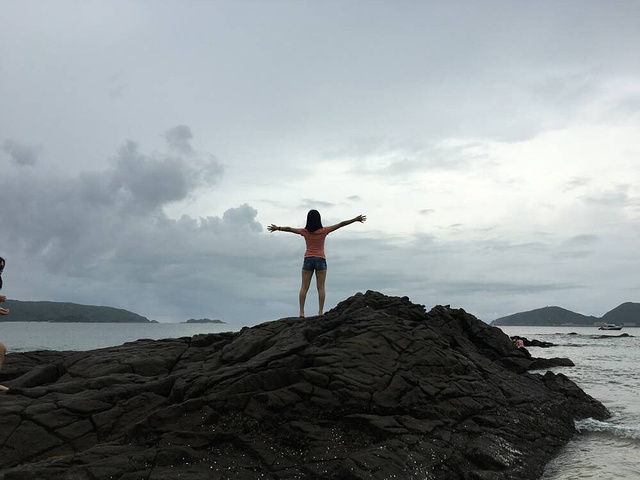 越走越来越远离人海和沙滩景点,路上没有一个人,应该是新开发的环岛路吧,这条小路旁边下去就是礁石和深海,怕有危险然后就放弃不敢在走远了。