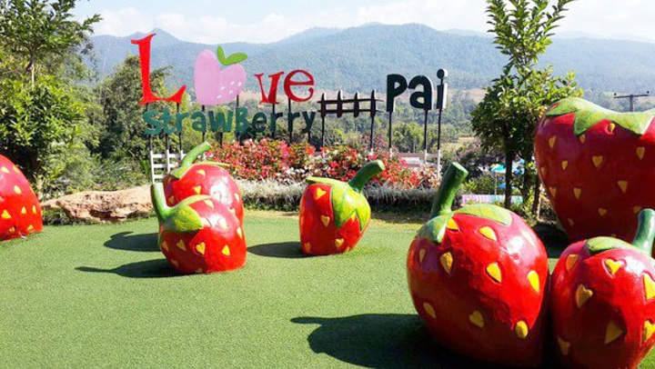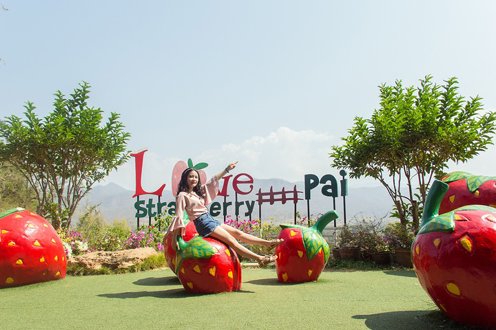 到草莓园还需要开一段路草莓园,有着很多草莓装饰元素的种植园,装点着各种草莓雕塑、花车,心形门,留言卡片等。是一个小清新的草莓主题吧。原味酸甜草莓,看着无数游客各种摆拍赶场,吹着微风,奢侈着消磨时光。来自游记一场“蓄谋已久”的泰北之旅