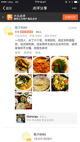 晚上去吃了泰菜,找了一家有中文菜单的店,没想到大众点评还能打八折,用泰国的手机卡注册了新号当时就打折了。