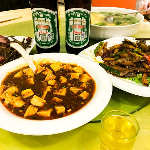 天色已晚,慢慢往回走。在宗角禄康公园后面,距离我们客栈不远,有一家餐厅名叫汉堡快餐,川菜,味道真是好,据说西藏川菜最多。还是川菜适合我们,于是,它成了我们的定点餐厅,几乎每天都来光顾。来拉萨一定要试试拉萨啤酒,喝口啤酒,交个朋友。来自游记雪山、圣湖、美丽的喇嘛庙——记2017年春节我们一起追梦过的西藏